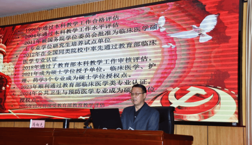 讲座中,冯向先教授围绕“青马青蓝铸魂,坚定理想信念”“赓续红色基因,培养四有人才”等五方面,结合自身学术阅历与人生感悟,从校史红色传承、公共卫生使命,到“青马工程”“青蓝工程” 育人意义、医者仁心坚守,深刻阐释红色精神时代内涵与青年责任担当,为师生带来思想深刻的精神洗礼。