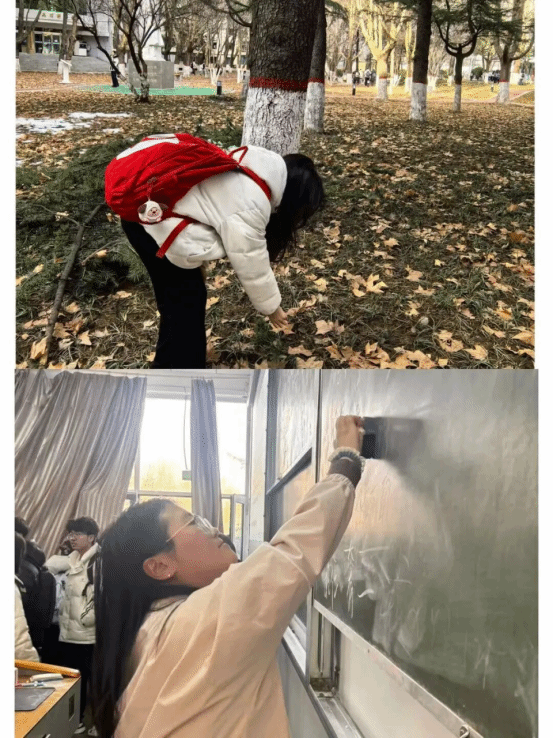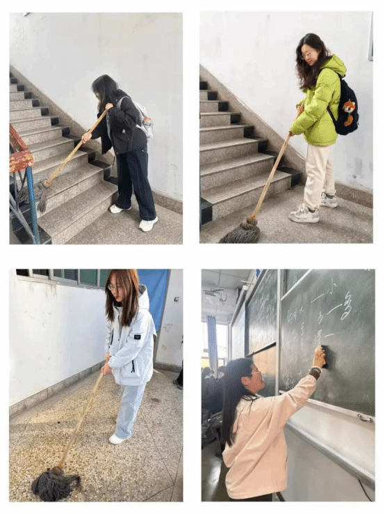 活动现场,同学们分工明晰、协作有序,手持扫帚、抹布、垃圾袋等清洁工具,对教学楼及周边区域开展全方位、无死角清理整治。大家各司其职、认真履职,细致清扫教学楼内走廊、楼梯的浮尘杂物,耐心擦拭门窗、扶手及墙面污渍,全力清除各类卫生盲区;同步俯身捡拾教学楼前草丛内的塑料袋、纸屑、枯枝等垃圾,逐一清理绿地隐藏杂物,不放过一处细节、不遗漏一个死角。虽然清扫工作琐碎繁杂、耗费体力,但全体学子始终热情饱满、干劲不减,用汗水擦拭校园角落,以行动诠释奉献精神,充分展现了公卫学子吃苦耐劳、乐于奉献、团结奋进的优良学风与精神风貌。