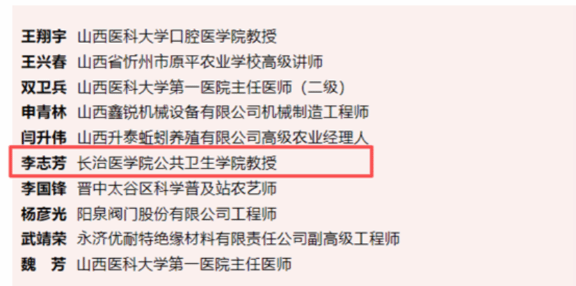 10月13日,中共山西省委宣传部、山西省科学技术协会、山西省科学技术厅组织开展的2025年山西省“最美科技工作者”学习宣传活动遴选结果公布。经组织推荐、资格审核、专家遴选等程序,最终确定10名优秀科技工作者获此殊荣,我院李志芳教授成功入选,获评2025年山西省 “最美科技工作者”。