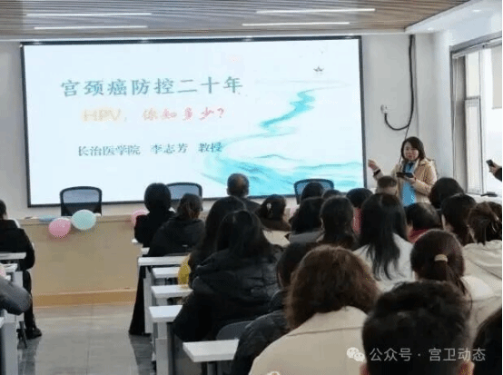 3月5日上午,李志芳教授为上党区太岳西大街社区居民们作了题为《宫颈癌防控二十年》的主旨报告,用详实数据剖析发病现状与疾病负担,为基层女性面对面普及宫颈癌预防策略。